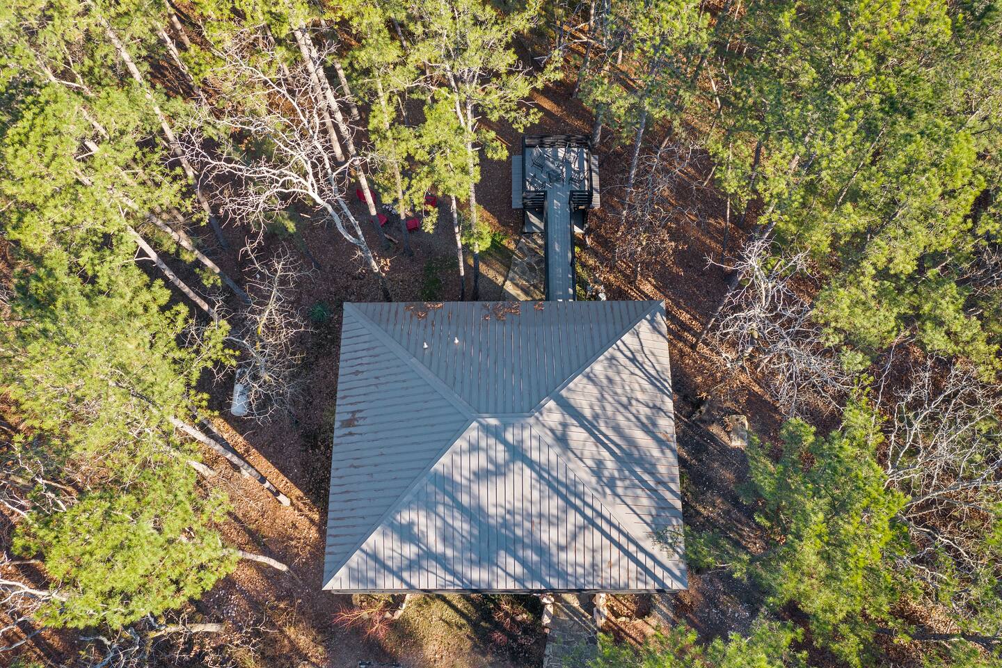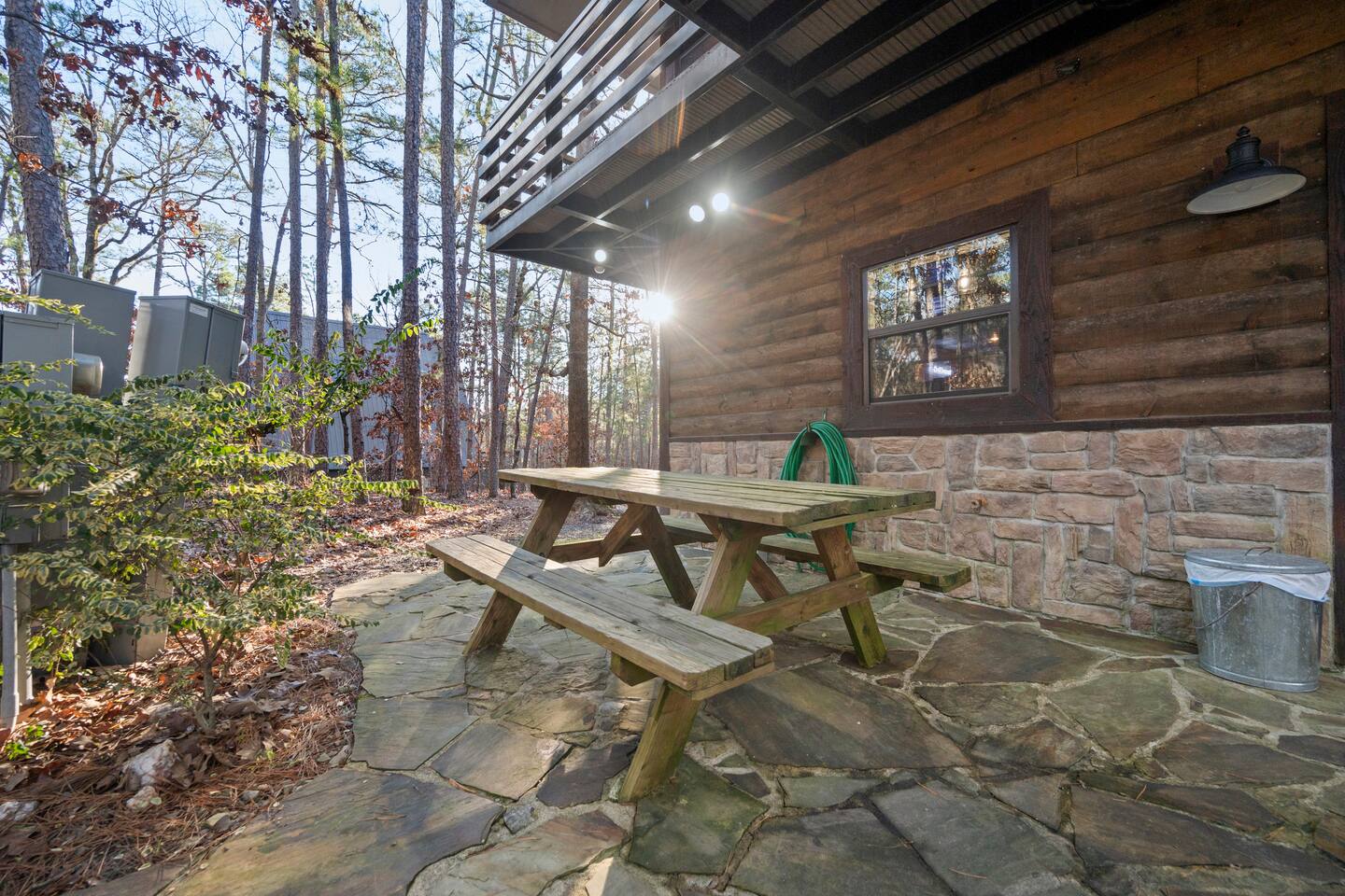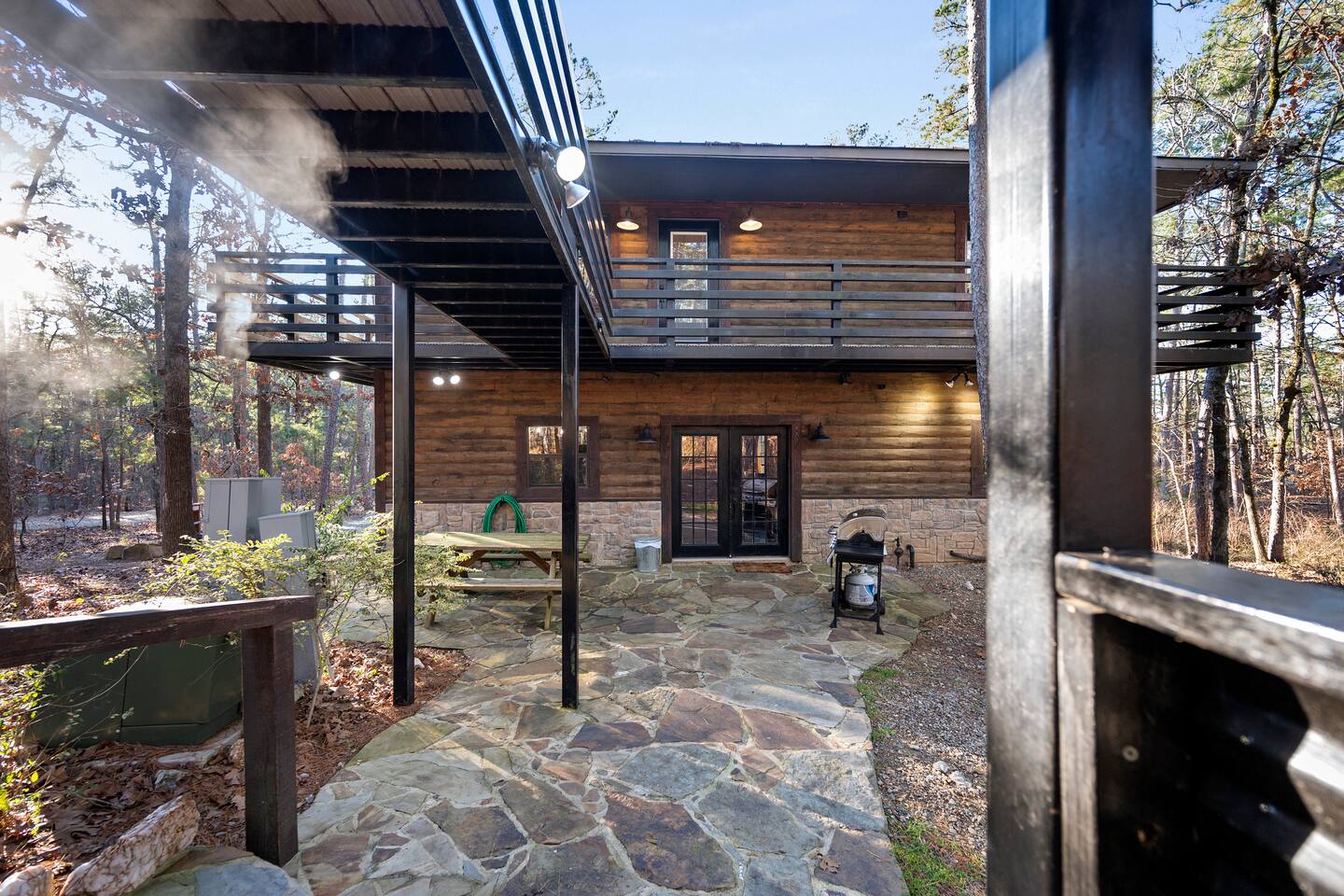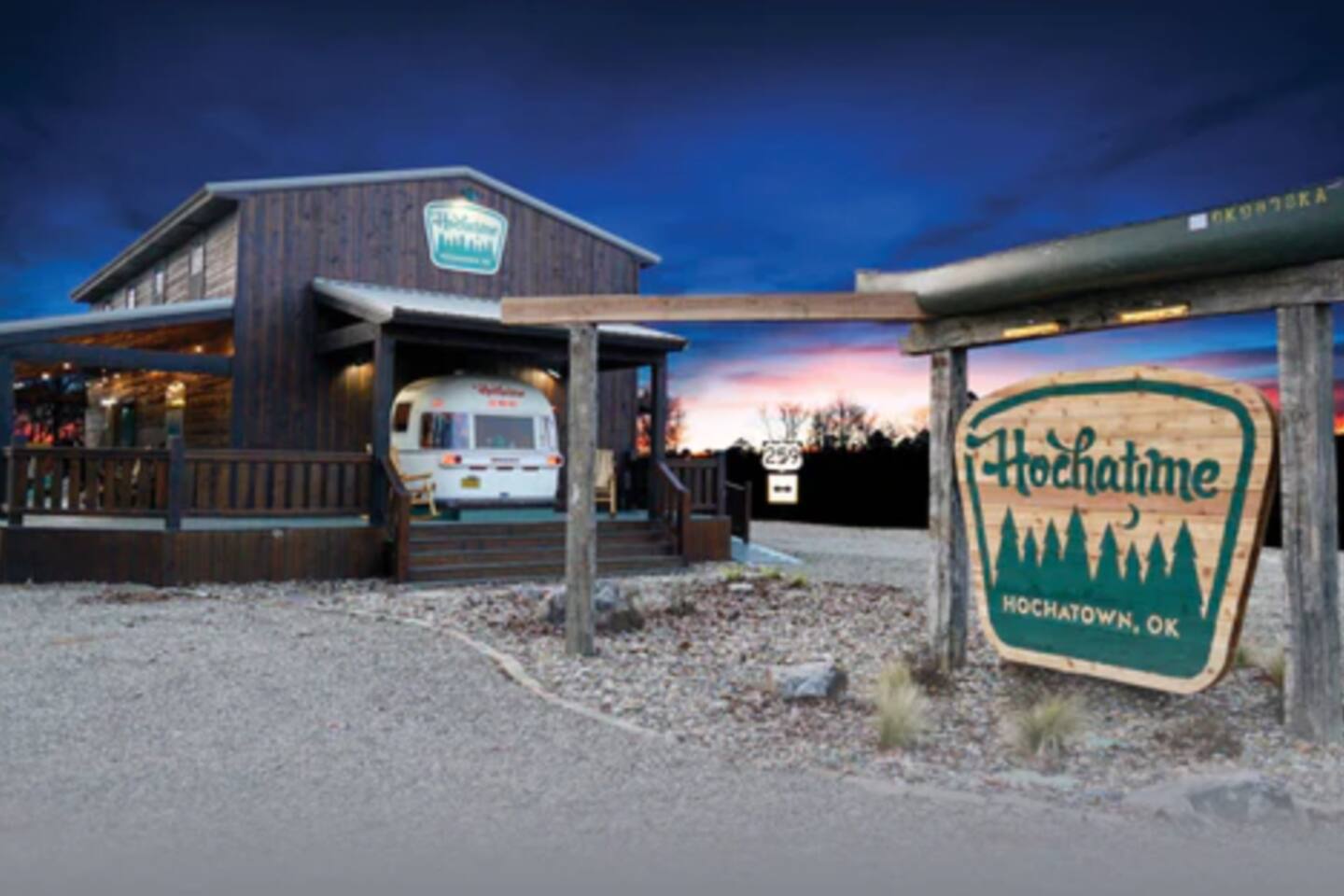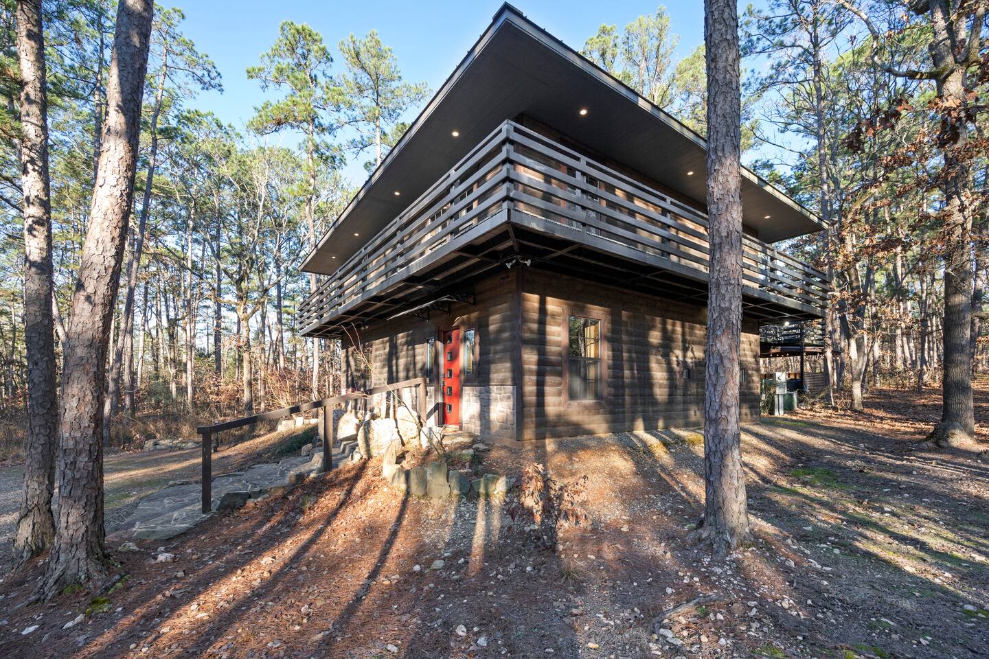 Once you exit the highway, you will drive on gravel roads on your way to the cabin for less than 0.5 mi. Located within the Ouachita National Forest. And while it's definitely a retreat in the woods...it's also a perfect base-camp right in the heart of all the great things to do in the Beaver's Bend area (within a couple of miles of The Grateful Head, Mountain Fork Brewery, Hochatown Distilling, escape room adventures, petting zoo, the maze, and a whole host of other restaurants and attractions). The cabin is located in Hochatown with a Broken Bow post office address. Just a short drive to the lake.