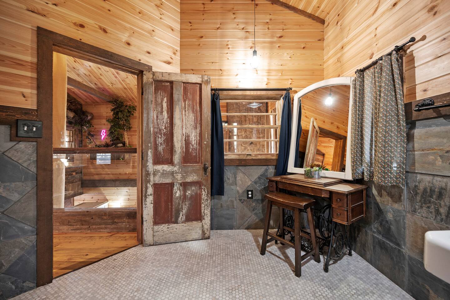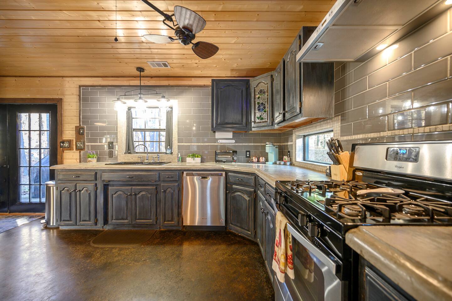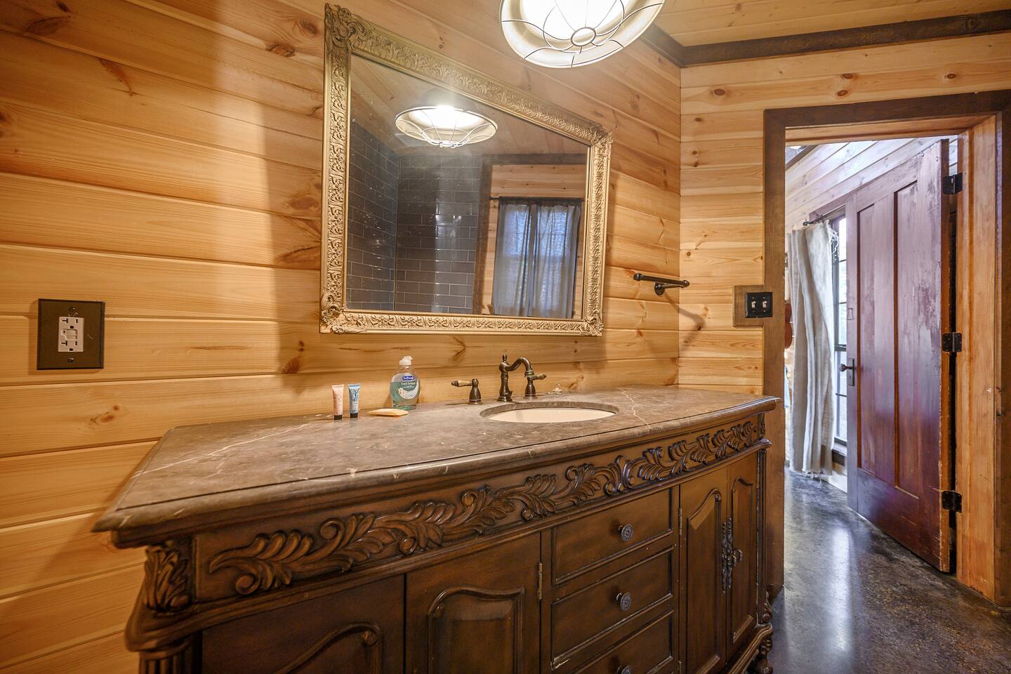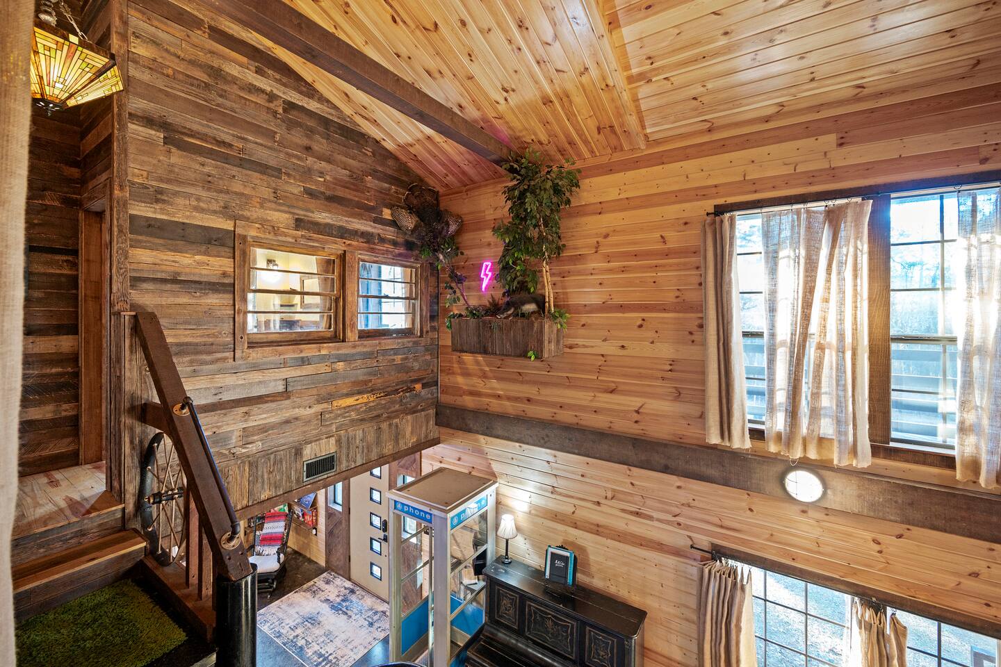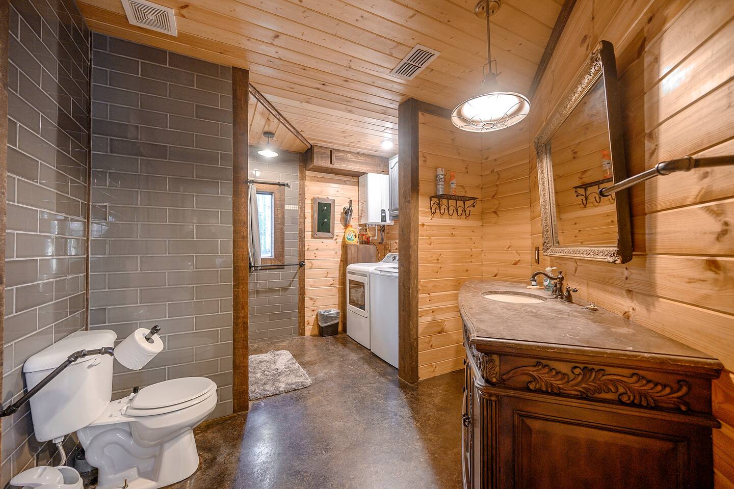 Once you exit the highway, you will drive on gravel roads on your way to the cabin for less than 0.5 mi. Located within the Ouachita National Forest. And while it's definitely a retreat in the woods...it's also a perfect base-camp right in the heart of all the great things to do in the Beaver's Bend area (within a couple of miles of The Grateful Head, Mountain Fork Brewery, Hochatown Distilling, escape room adventures, petting zoo, the maze, and a whole host of other restaurants and attractions). The cabin is located in Hochatown with a Broken Bow post office address. Just a short drive to the lake.