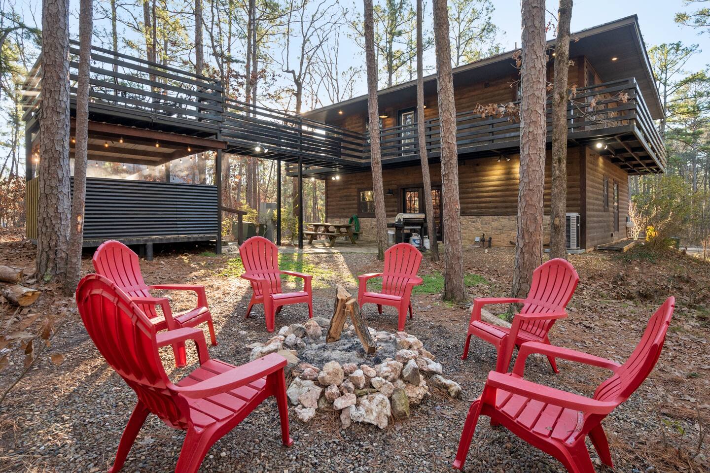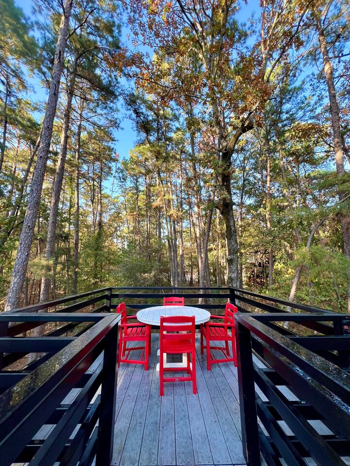 The neighborhood has gravel roads but they are easy to navigate. You will receive turn-by-turn directions before check in but your GPS should take you to the cabin. Waze is the preferred GPS app for the area. The cabin has a half circle gravel driveway for parking. Room for multiple vehicles. Can maneuver ATV and jet ski trailers but too tight for a boat trailer. Traveling from out of town: While many guests are driving to the area, we have been honored to host more and more guests from all around the country. Here are your airport options: Little Rock, AR (LIT): 170 mi DFW-175 mi. and Love Field (DAL)-182 mi., both in Dallas, TX Tulsa, OK (TUL): 206 mi Oklahoma City, OK (OKC): 242 mi Texarkana (TXK) has a regional airport-80 mi. There are a few general aviation and private plane airports, with one in Broken Bow (RNWY 3200 ft). Nearby Idabel, OK (RNWY 4000 ft.) and DeQueen, AR (RNWY 5000 ft) have longer runways.